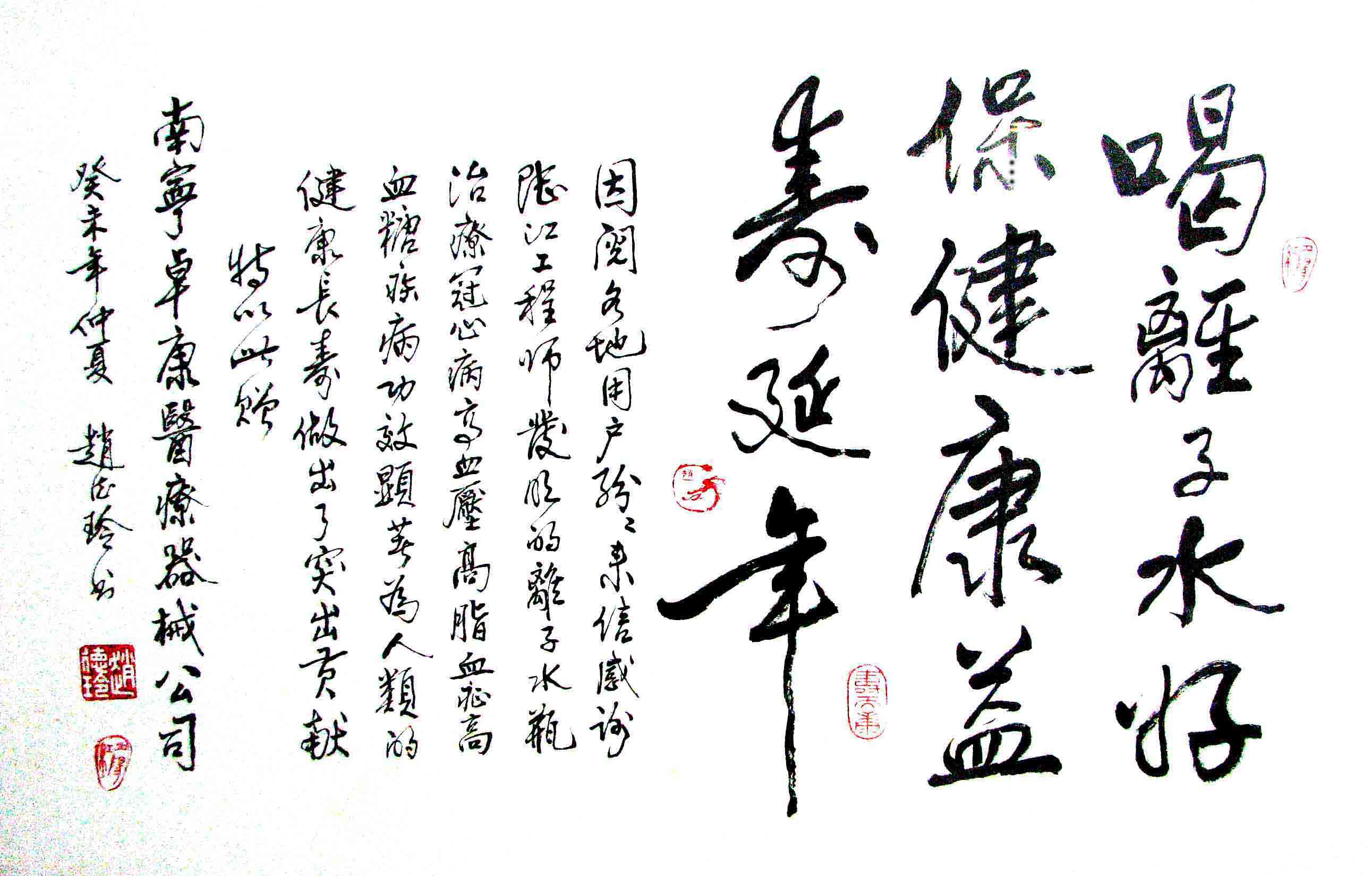 - -- 幾千年來,人類靠醫(yī)藥不能根治冠心病、高血壓和糖尿病,如想根治,那是夢想。可是,我從中國基礎(chǔ)醫(yī)學(xué)研究成果受到啟發(fā),研發(fā)了一種發(fā)明產(chǎn)品,處理出微小分子團水讓人飲用,實現(xiàn)了人類這一夢想!患者飲用后遠離了冠心病、高血壓和2型糖尿病。這一成果曾經(jīng)過臨床試用和專家鑒定,作為準字號醫(yī)療器械讓廣大患者飲用,療效進行跟蹤調(diào)查。很多患者的反饋情況令人感動,我放在公司網(wǎng)站上(nnzk.com),震撼了醫(yī)學(xué)專家,也使廣大同胞受到啟發(fā)。人們盼望飲用它給細胞補水,治愈多種病癥,既省錢,又安全,而且延長壽命。