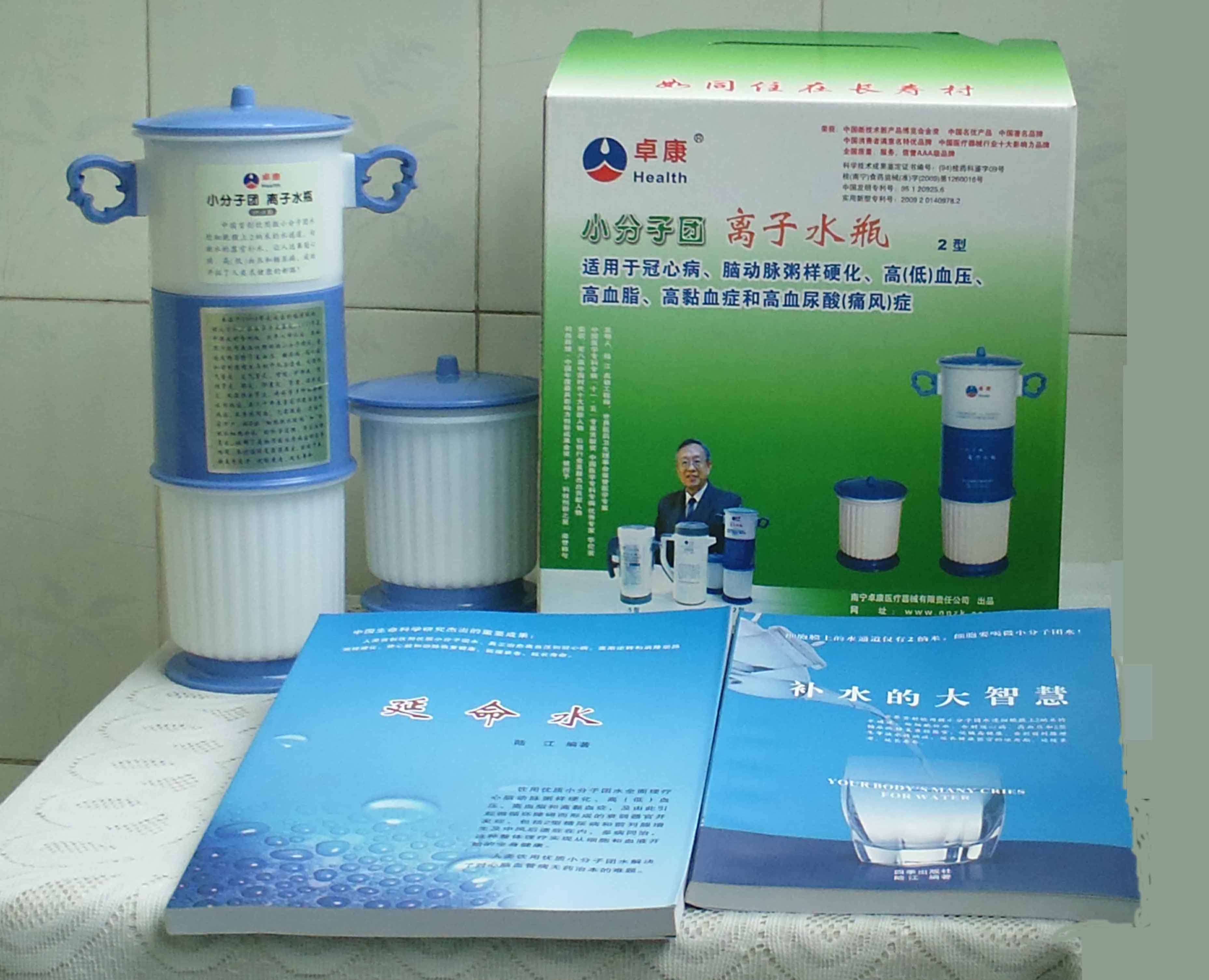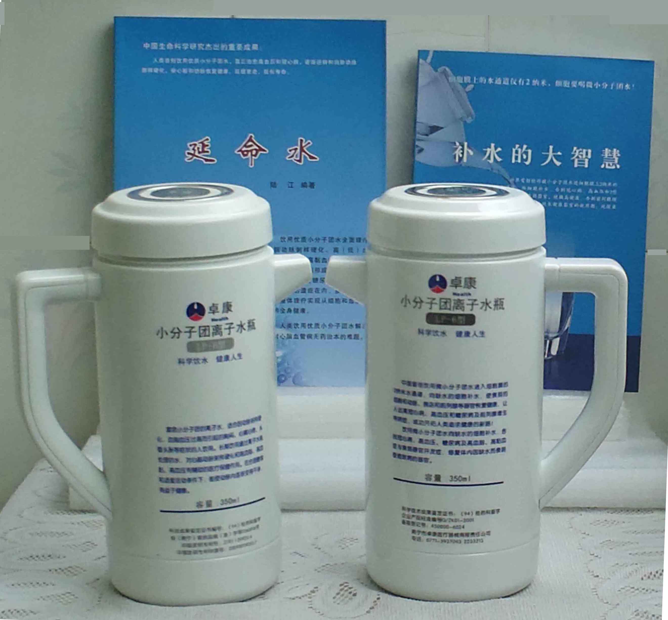 本品大量用戶的使用效果表明,能治愈冠心病、腦動脈硬化、原發(fā)性高(低)血壓、高血脂、高粘血癥、高血尿酸癥(痛風(fēng))和2型糖尿病、衰弱器官并發(fā)癥(前列腺增生、腎衰與尿毒癥)及中風(fēng)后遺癥等療效好。產(chǎn)品配信譽卡。使用壽命30年,不換芯,易清洗。團購優(yōu)惠。從郵局匯款,匯費1%,地址按本頁下方地址、聯(lián)系人寫。從銀行匯款,請點擊[聯(lián)系匯款]欄,從工商銀行匯款,建設(shè)銀行、農(nóng)業(yè)銀行匯款,均免收匯費,匯款后20--30分鐘內(nèi)發(fā)短信,可用微信轉(zhuǎn)帳,均免匯費,微信號即手機號13768308380。匯款后,告知你的姓名和地址,我公司聯(lián)系人手機號是:13768308380。卓康牌離子水瓶為我公司獨家生產(chǎn),郵購產(chǎn)品配《補水的大智慧》彩印書一本,另配四季出版社出版的新書《補水的大智慧》一本,并配光盤一張(含央視主持人釆訪陸江的對話視頻)。目前市場和"淘寶網(wǎng)"上有人兜售假冒的偽品,望讀者審察辯別真?zhèn)危旒僬哓飧`假冒本公司的各種認證、獲獎獎項、專利號和外包裝盒上的中英文字,包括科技成果的鑒定意見等,請讀者注意防偽。如何識別假貨?已經(jīng)買了假貨怎么辦?(請點擊[打假掠影][打假掠影])。