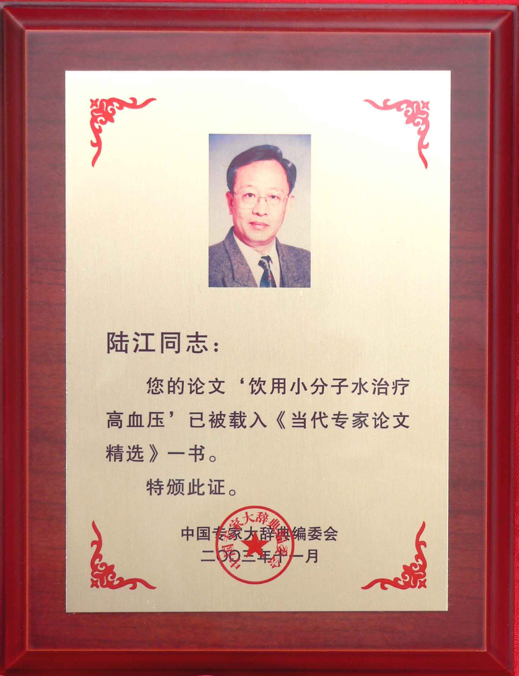 新疆63歲的賀兆生飲用一年,冠心病未愈,他用電話介紹是食堂管理員,問他食量多少?說吃七八分飽,睡前還吃兩袋牛奶,陸 江說我在論文和書中多次批判“吃七八分飽”,關(guān)照患者務(wù)必用“己饑方食”控制主食肉食量,要他把牛奶改在早中餐吃,減少主食肉食量,建議不吃晩餐,晚上只吃一個蘋果,再經(jīng)幾個月補水節(jié)食,治愈了21年的冠心病和肥胖、失眠等病,信中由衷地感激陸 江為再生父母。[13]因為醫(yī)生從未過問他的膳食習(xí)慣,只管開處方藥或手術(shù),父母也不會叫他不吃晩飯。